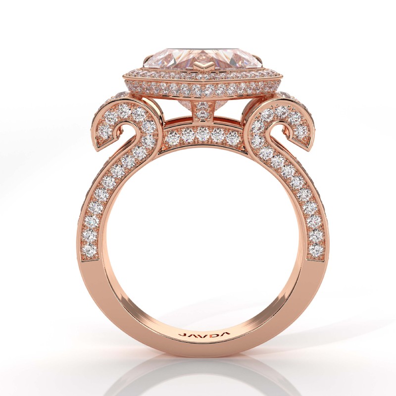 Vintage Halo Heart Semi Mount Diamond Engagement Ring 1.57Ct 18k Rose Gold.