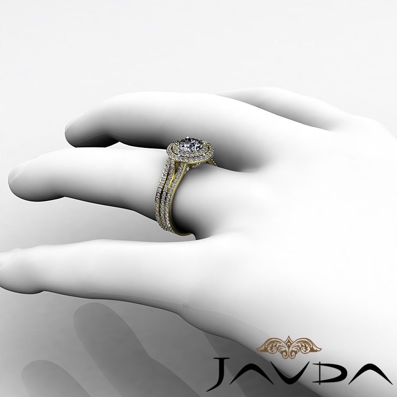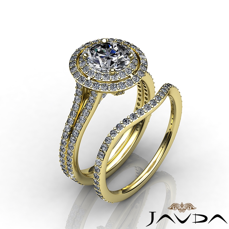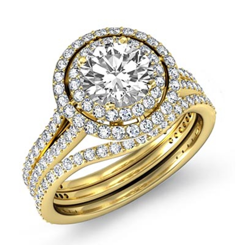 Gala Halo Bridal Set style Engagement Ring, center is Round shape Diamond Report by IGI, I Color & VVS2 clarity, Made in 14k Yellow Gold (3.51 ct. tw.)
