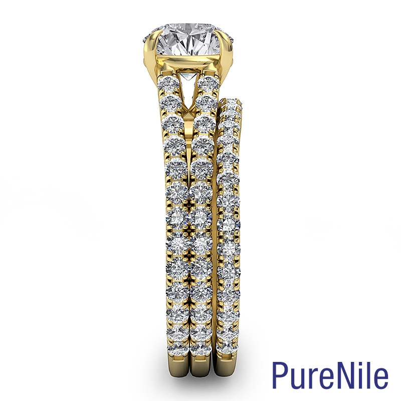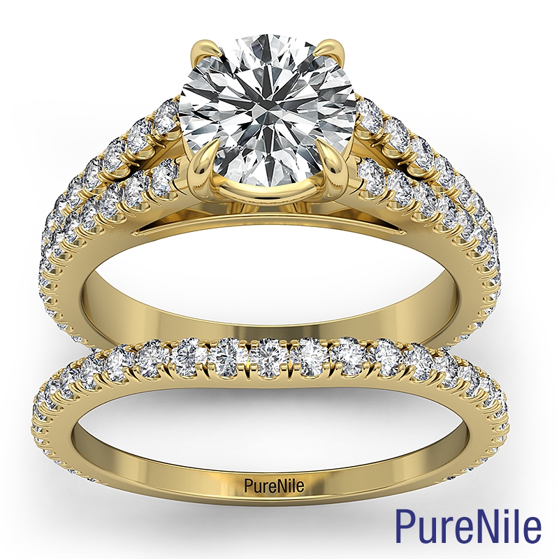 French Split Band Bridal Set style Engagement Ring, center is Round shape Diamond Report by IGI, H Color & VVS2 clarity, Made in 14k Yellow Gold (2.73 ct. tw.)