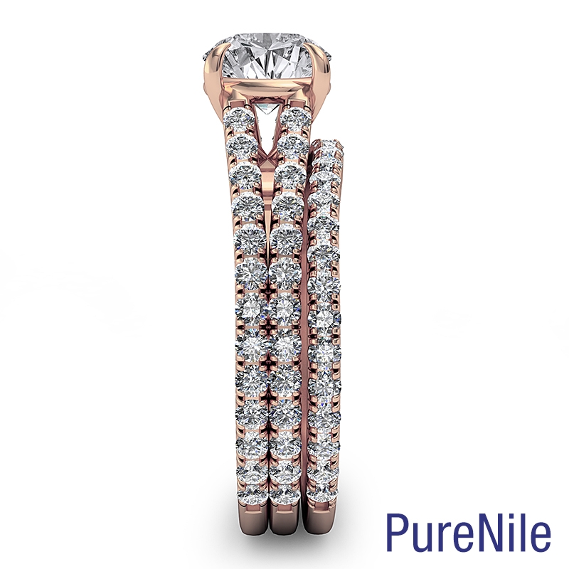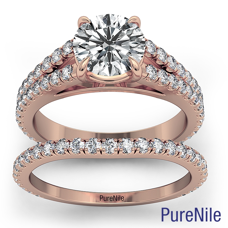 French Split Band Bridal Set style Engagement Ring, center is Round shape Diamond Report by IGI, H Color & VVS2 clarity, Made in 18k Rose Gold (2.73 ct. tw.)