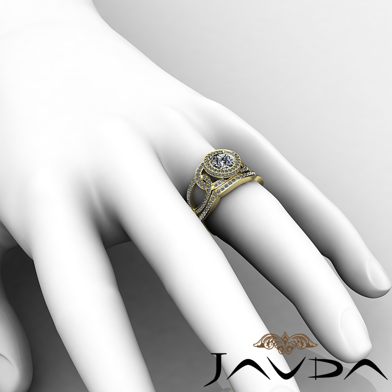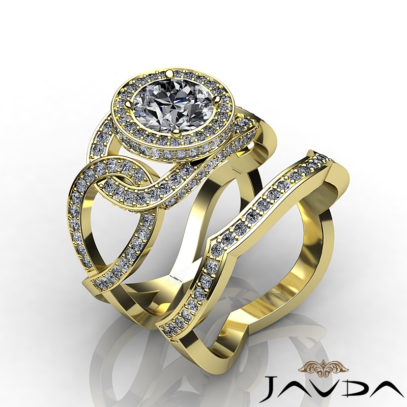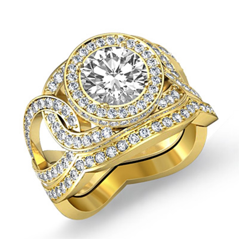 1.7Ct Halo Pave Diamond Engagement Ring Round Bridal Set 14k Yellow Gold Setting - javda.com
