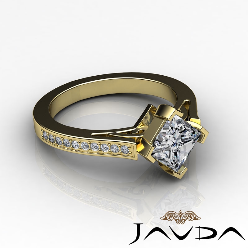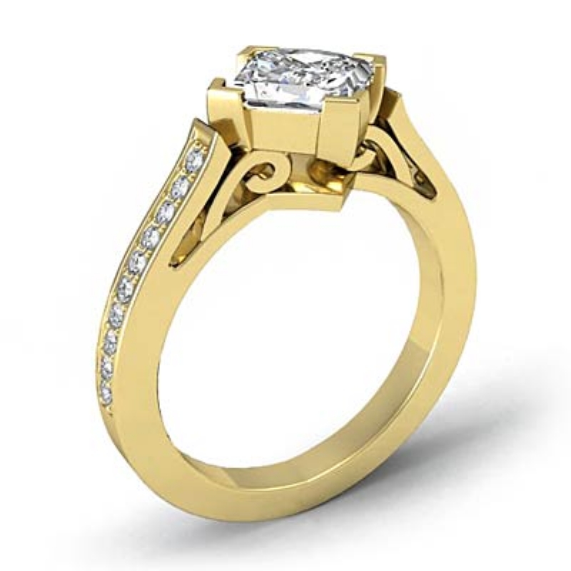 style Engagement Ring, center is Princess shape Diamond Report by GIA, J Color & VVS2 clarity, Made in 14k Yellow Gold (1.51 ct. tw.)