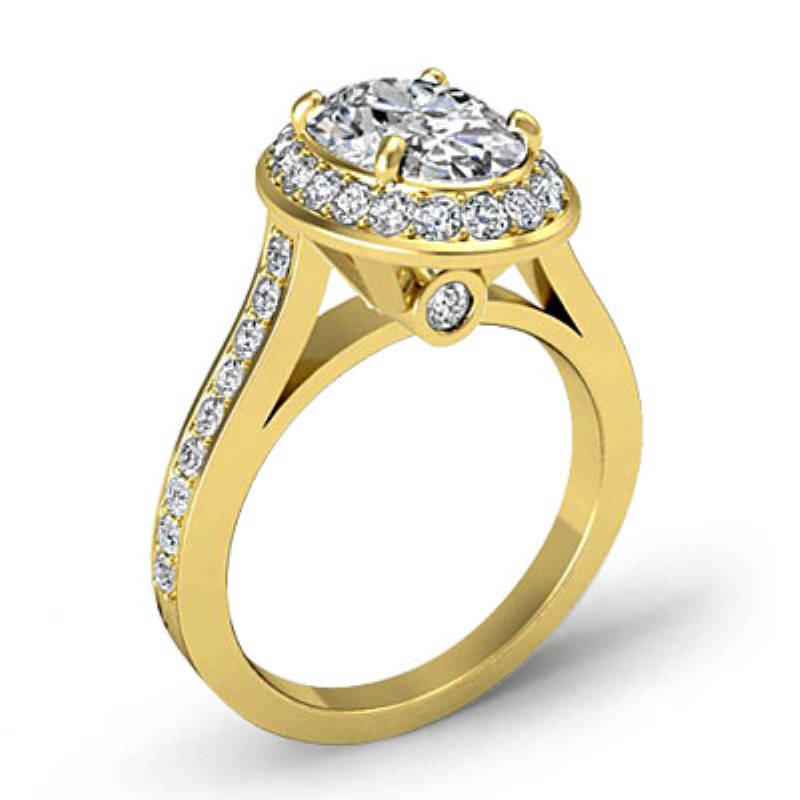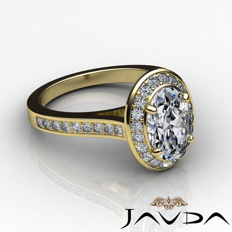 Halo Pave Bezel Set style Engagement Ring, center is Oval shape Diamond Report by GIA, D Color & VVS1 clarity, Made in 14k Yellow Gold (1.5 ct. tw.)