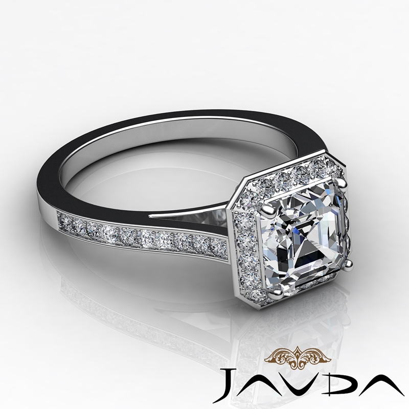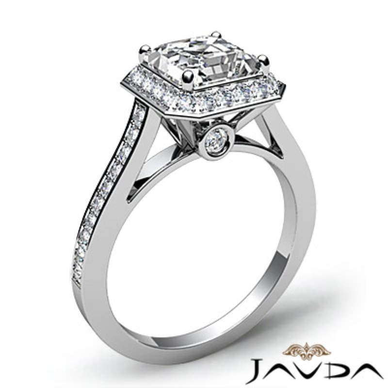 Halo Pave Bezel Set style Engagement Ring, center is Asscher shape Diamond Report by IGI, D Color & VS1 clarity, Made in Platinum 950 (1.78 ct. tw.)
