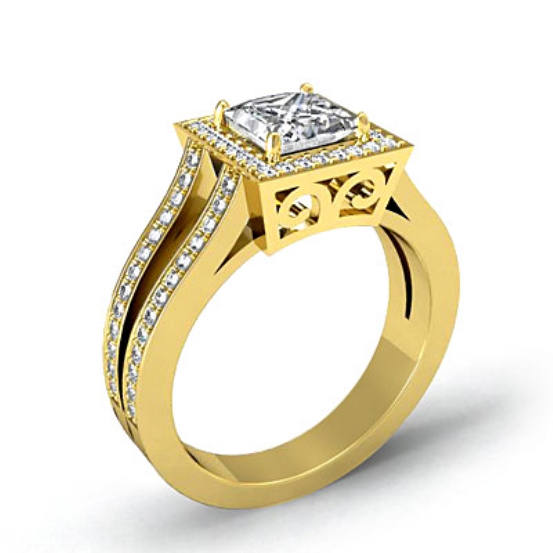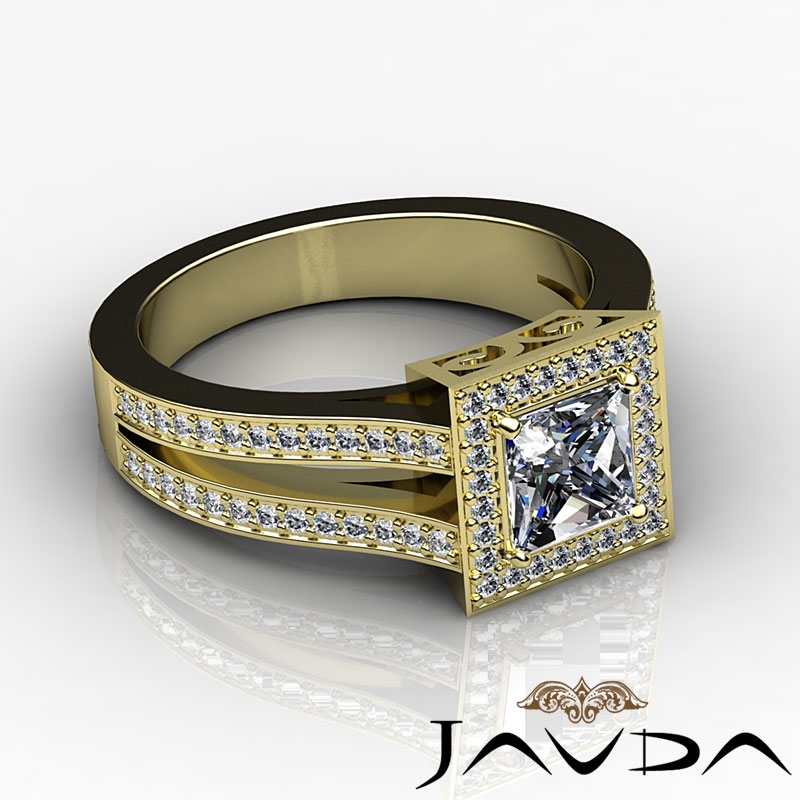 0.9Ct Diamond Engagement Princess Ring 18k Yellow Gold Halo Semi Mount.