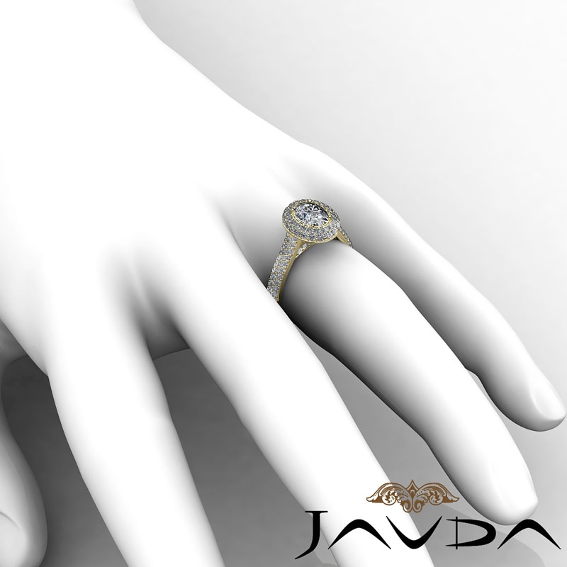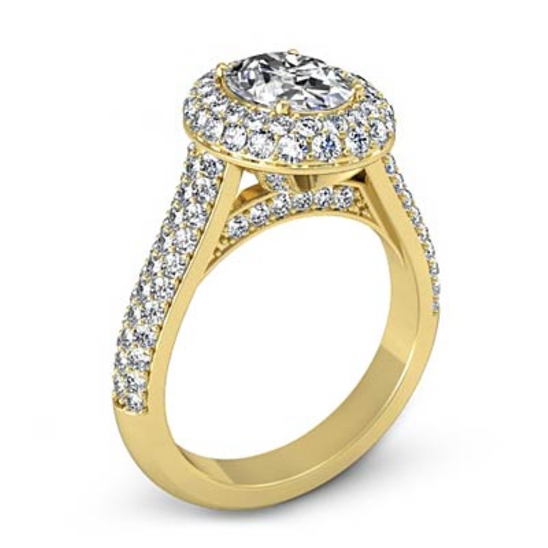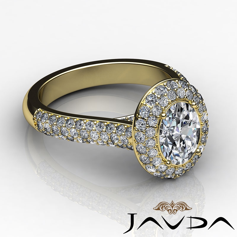 1.5Ct Diamond Engagement Ring Halo 18k Yellow Gold Oval Semi Mount.