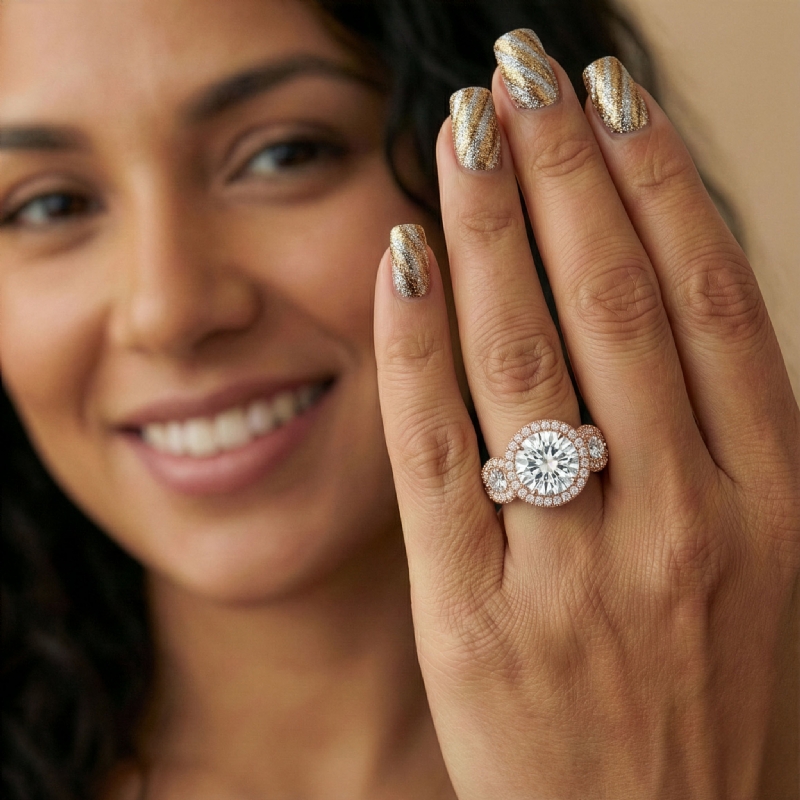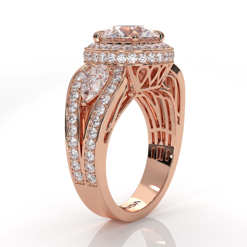 style Engagement Ring, center is Round shape Diamond Report by IGI, D Color & VS1 clarity, Made in 18k Rose Gold (2.89 ct. tw.)
