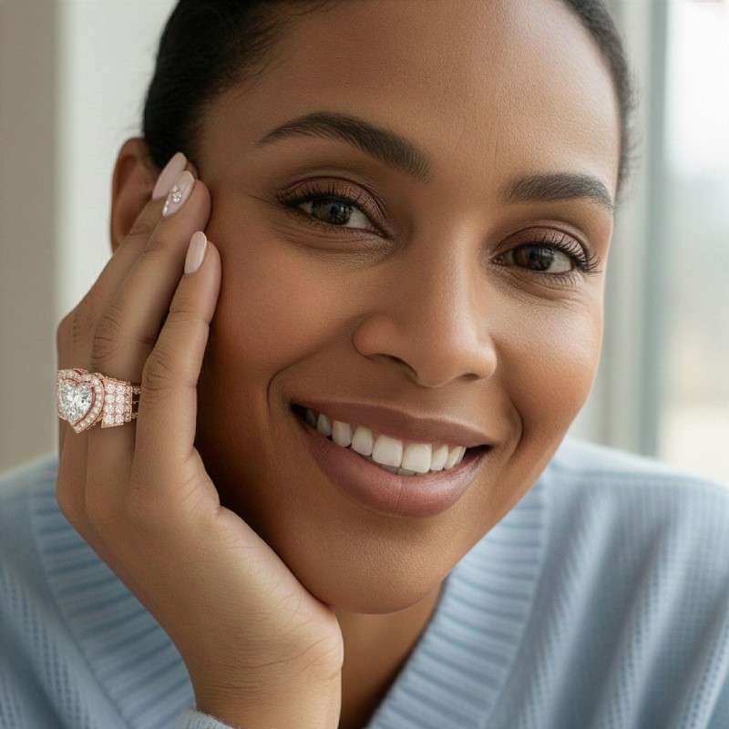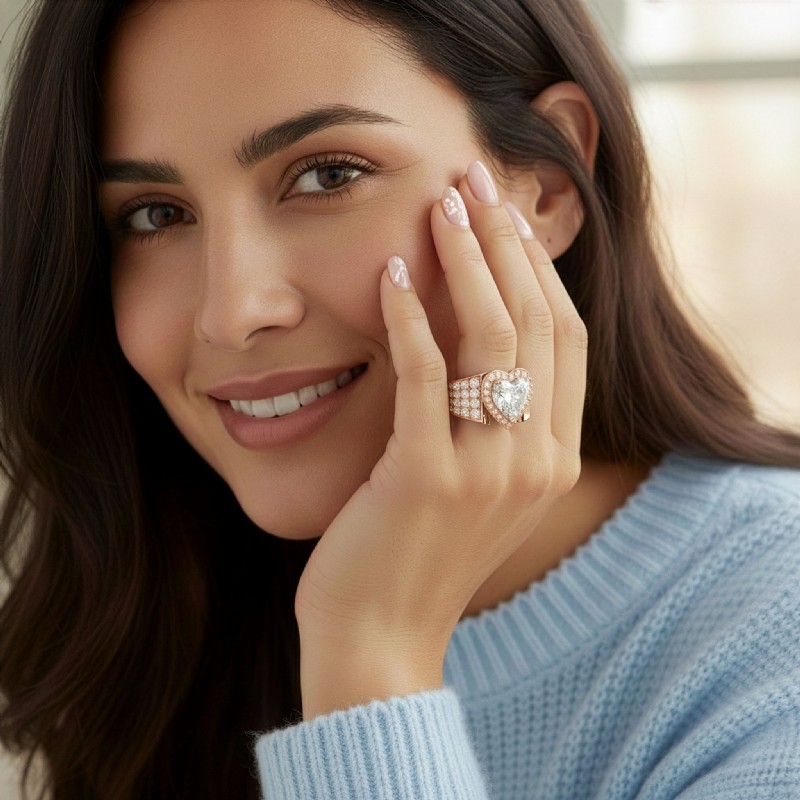 style Engagement Ring, center is Heart shape Diamond Report by IGI, E Color & VS1 clarity, Made in 14k Rose Gold (6.22 ct. tw.)