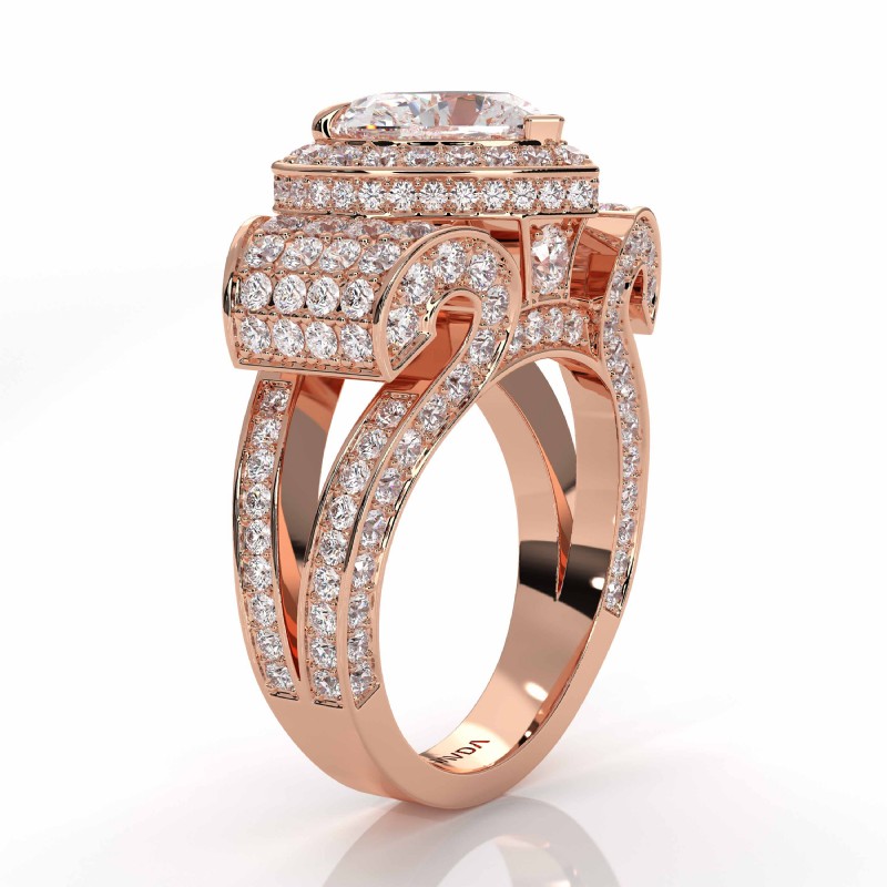 Round Diamond Engagement Ring Antique & Vintage Halo Pave Semi Mount 14k Rose Gold 2.7Ct.