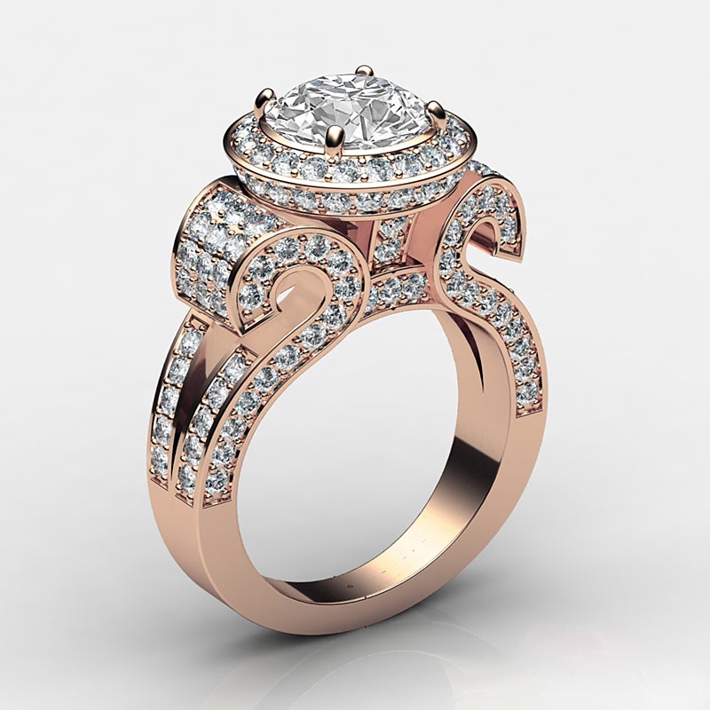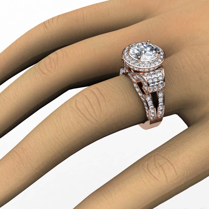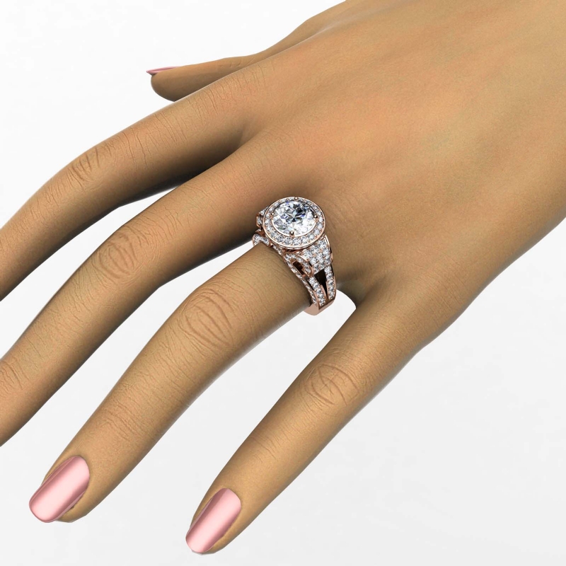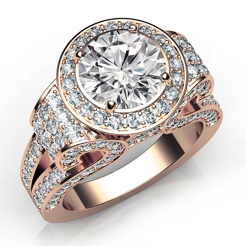 Round Diamond Engagement Ring Antique & Vintage Halo Pave Semi Mount 14k Rose Gold 2.7Ct.