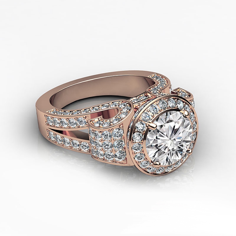 style Engagement Ring, center is Round shape Diamond Report by IGI, D Color & VS1 clarity, Made in 14k Rose Gold (3.74 ct. tw.)
