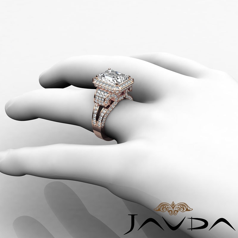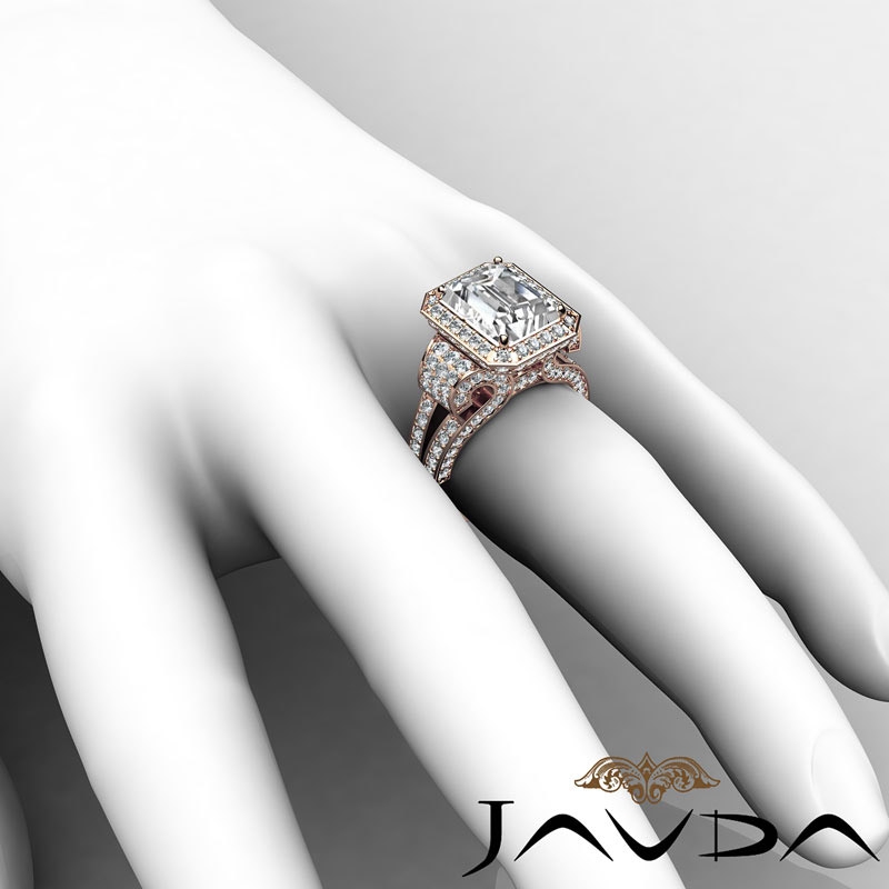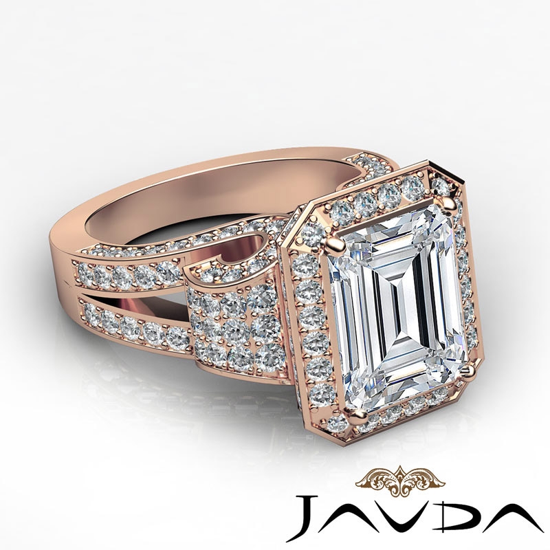 style Engagement Ring, center is Emerald shape Diamond Report by IGI, D Color & VS1 clarity, Made in 14k Rose Gold (3.7 ct. tw.)