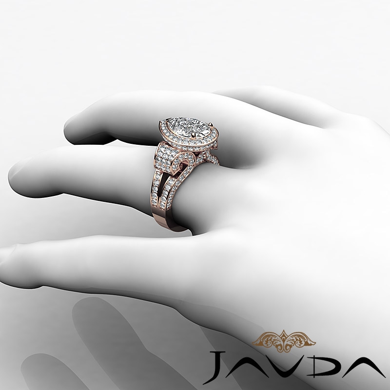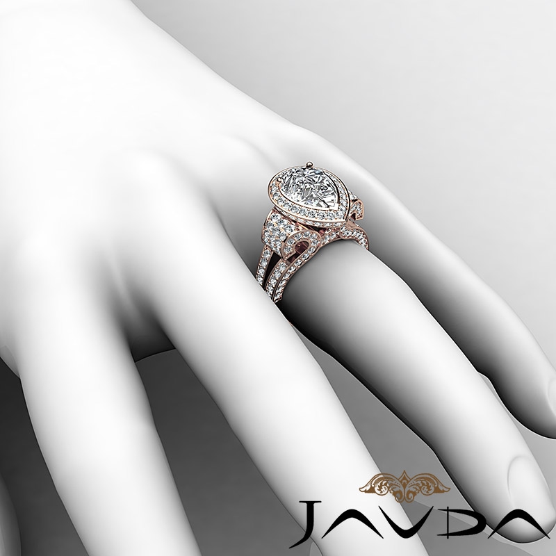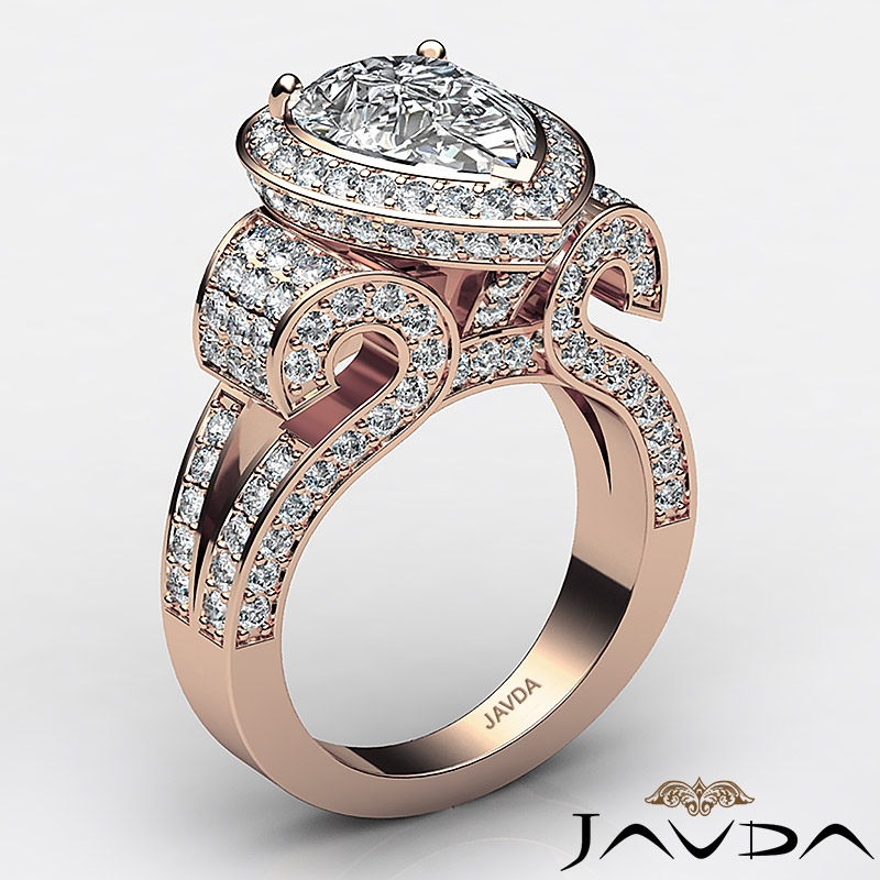 style Engagement Ring, center is Pear shape Diamond Report by IGI, D Color & VS1 clarity, Made in 14k Rose Gold (3.7 ct. tw.)