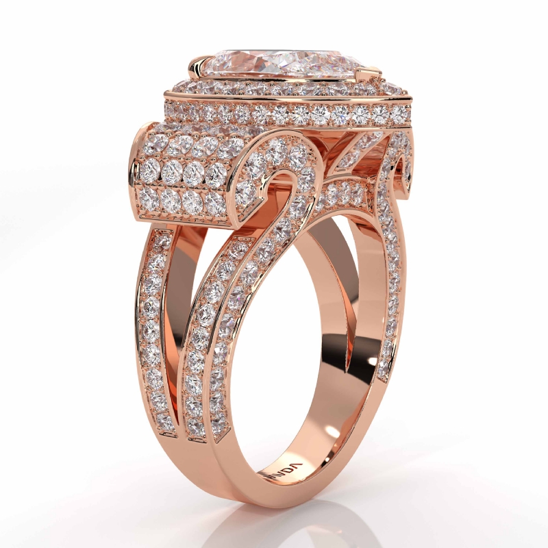 Round Diamond Engagement Ring Antique & Vintage Halo Pave Semi Mount 18k Rose Gold 2.7Ct.