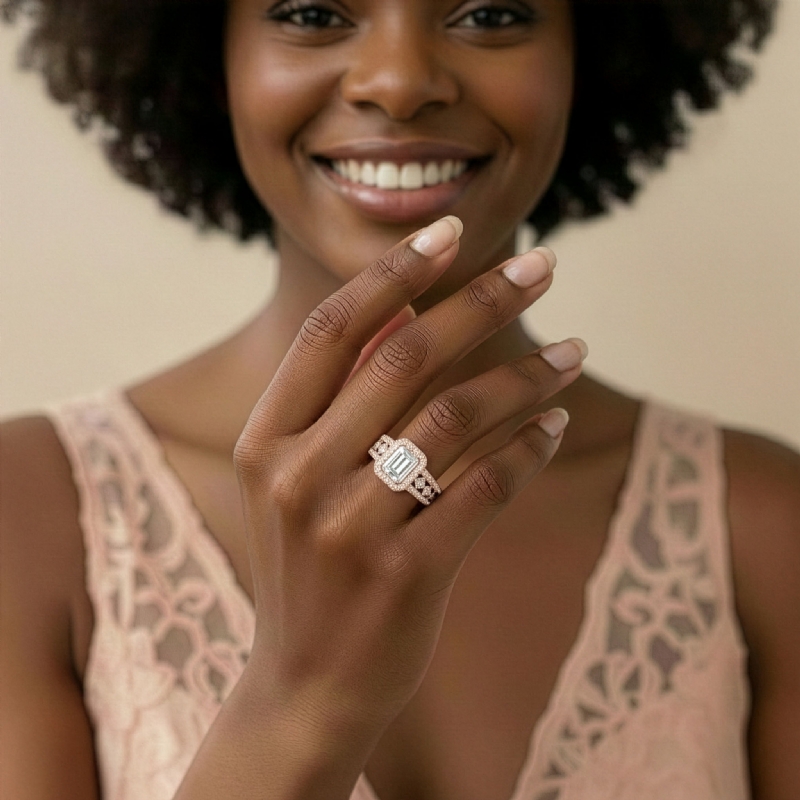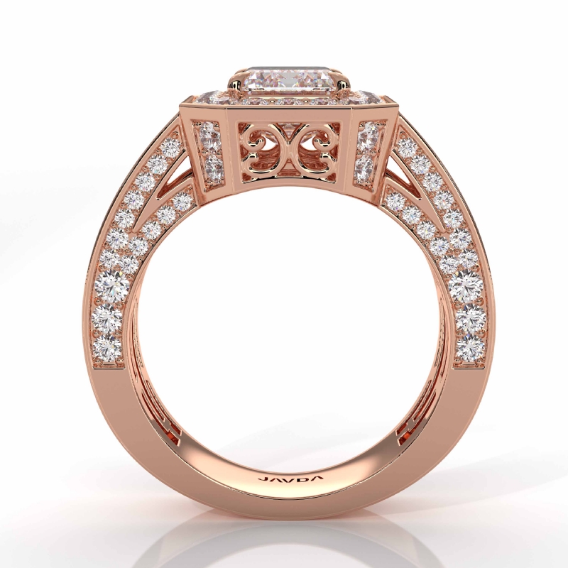 Emerald Semi-Mount Vintage Diamond Engagement Ring Halo Pave Setting 18k Rose Gold 2.7Ct.