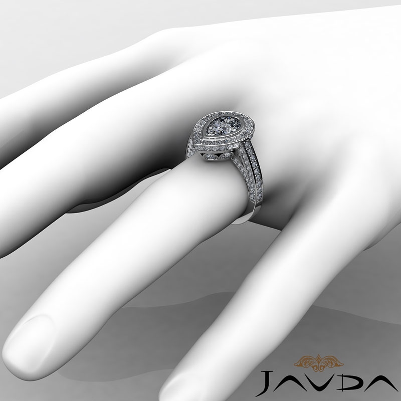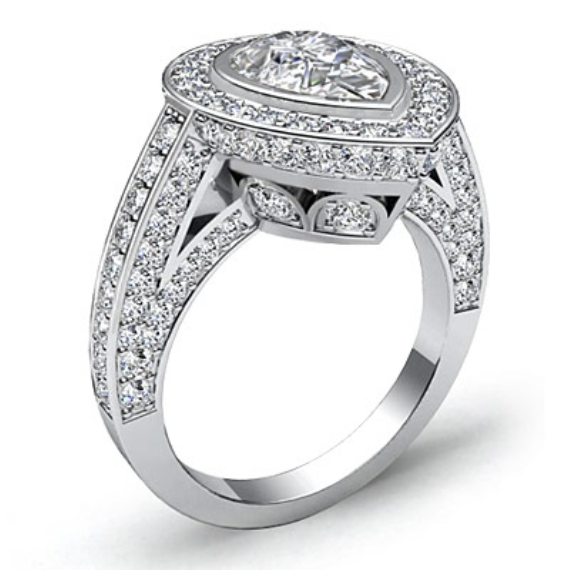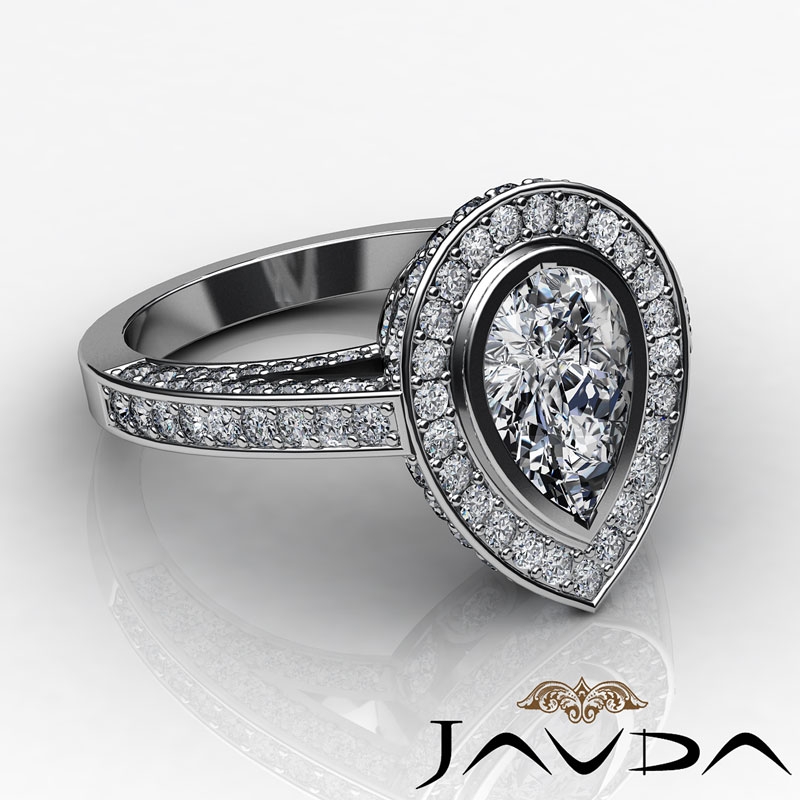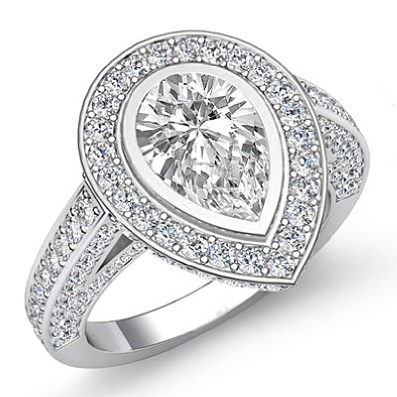Crown Halo Pave Bezel style Engagement Ring, center is Pear shape Diamond Report by GIA, D Color & VVS2 clarity, Made in 14k White Gold (2.65 ct. tw.)