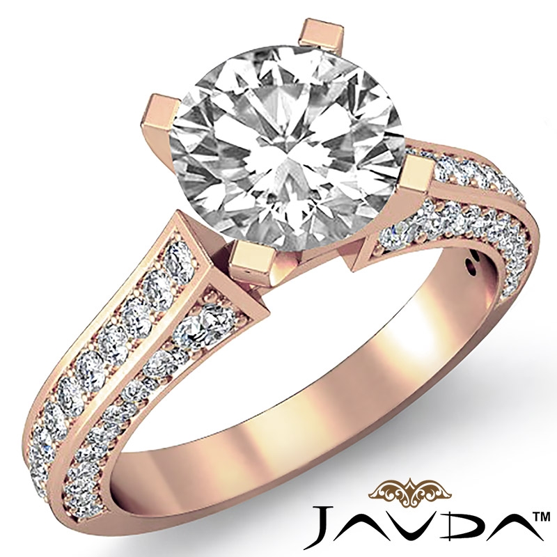 style Engagement Ring, center is Round shape Diamond Report by IGI, D Color & VS1 clarity, Made in 14k Rose Gold (2.04 ct. tw.)