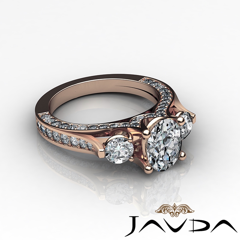 Three Stone Bridge Accent style Engagement Ring, center is Oval shape Diamond Report by IGI, D Color & VS1 clarity, Made in 18k Rose Gold (2.32 ct. tw.)
