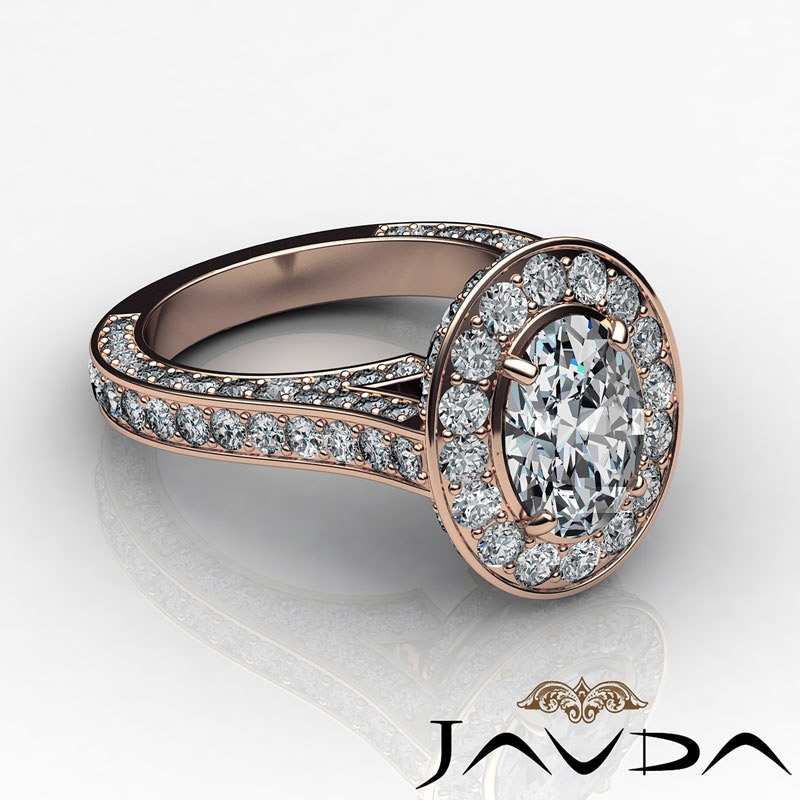 Halo Micro Pave Bridge Accent style Engagement Ring, center is Oval shape Diamond Report by IGI, D Color & VS1 clarity, Made in 14k Rose Gold (3.12 ct. tw.)