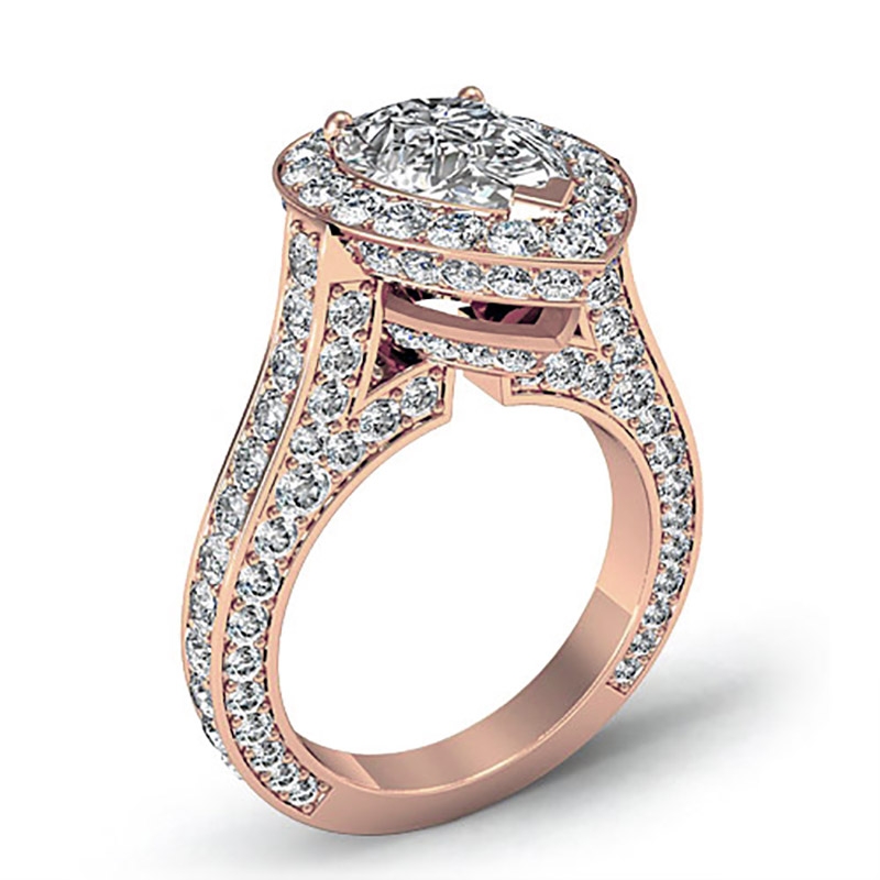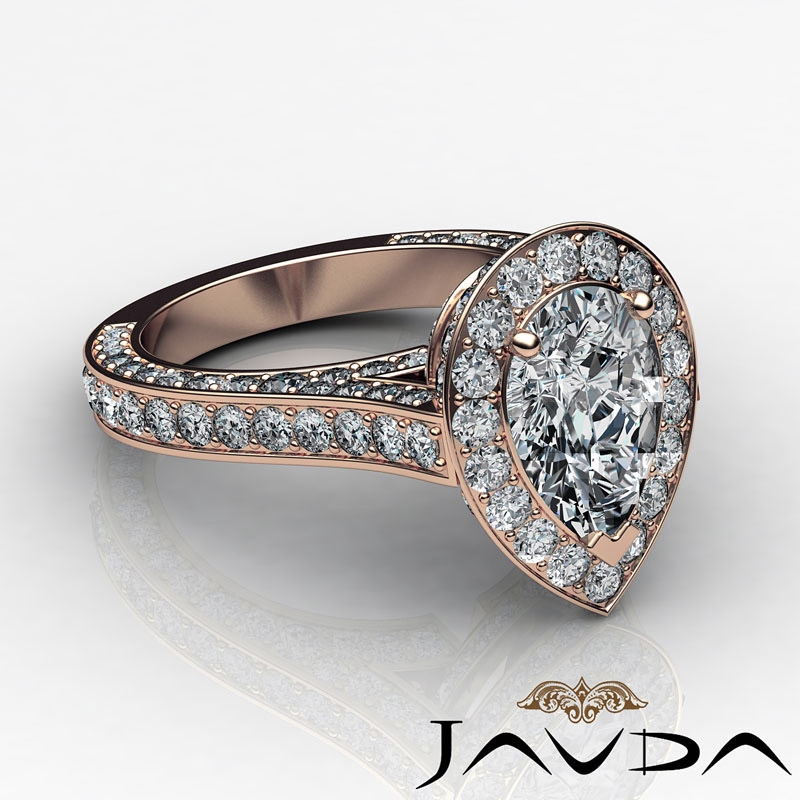 Halo Micro Pave Bridge Accent style Engagement Ring, center is Pear shape Diamond Report by IGI, E Color & VS1 clarity, Made in 14k Rose Gold (3.32 ct. tw.)