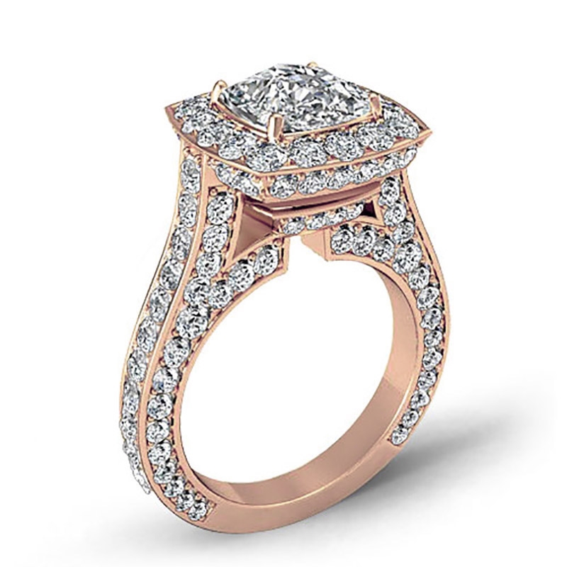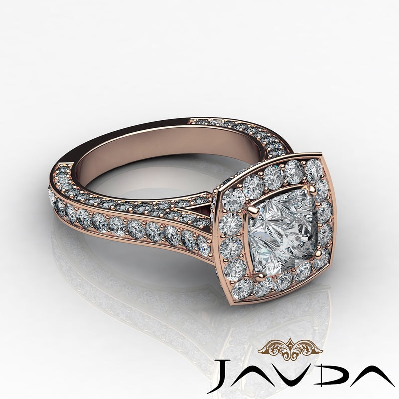 Halo Micro Pave Bridge Accent style Engagement Ring, center is Cushion shape Diamond Report by IGI, D Color & VS1 clarity, Made in 18k Rose Gold (3.11 ct. tw.)