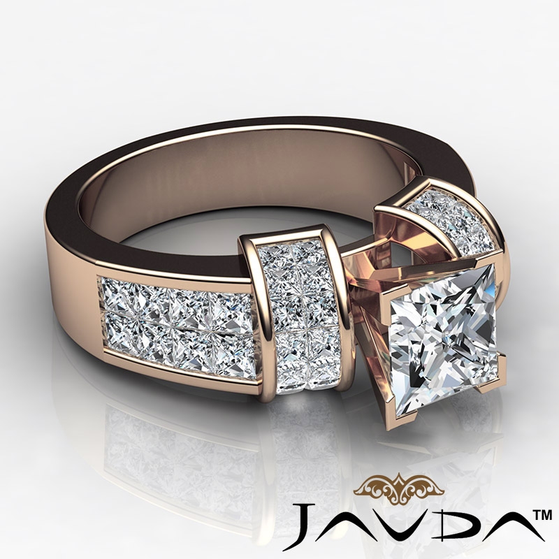 1.96Ct Diamond Engagement Ring 14k Rose Gold Princess Semi Mount.