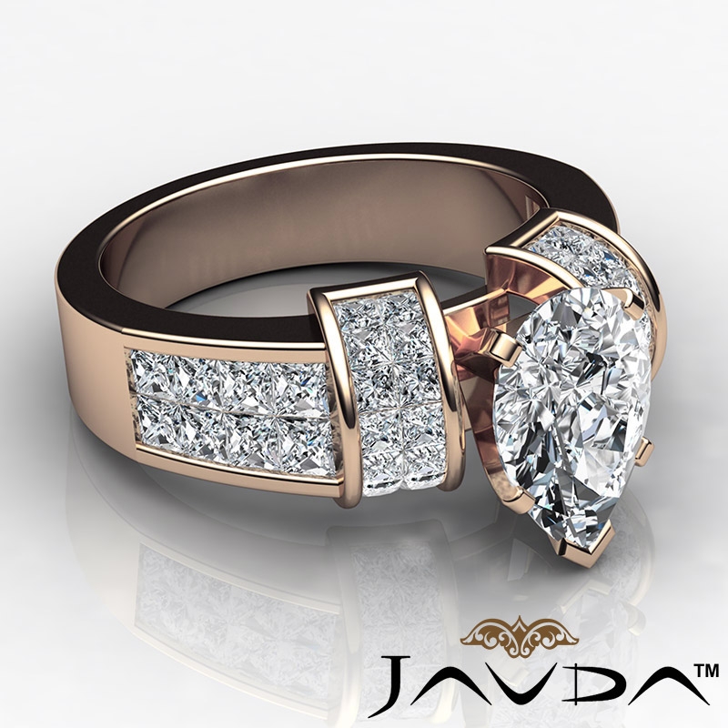 pear diamond engagement ring report by igi, e color & vs1 clarity, 18k rose gold (3.18 ct. tw.)