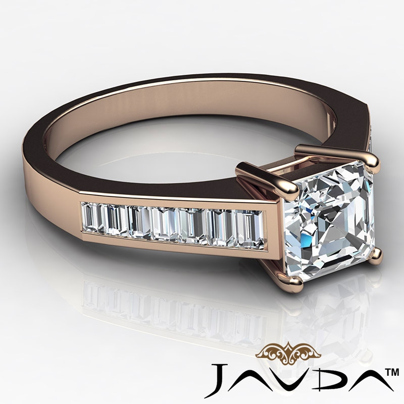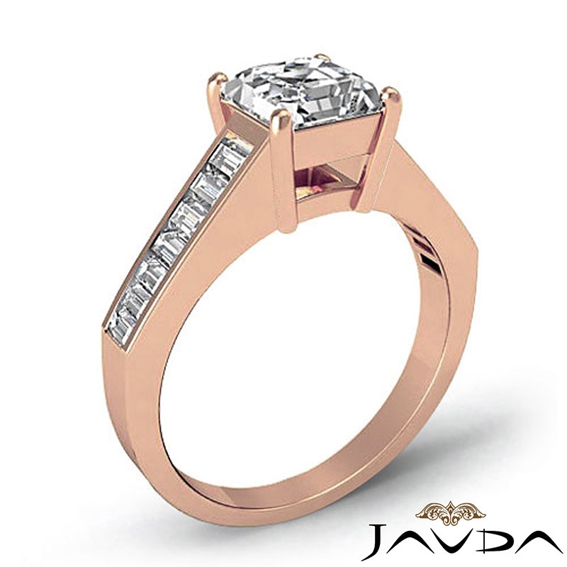 0.85Ct Baguette Channel Diamond Engagement Ring Setting 18k Rose Gold.