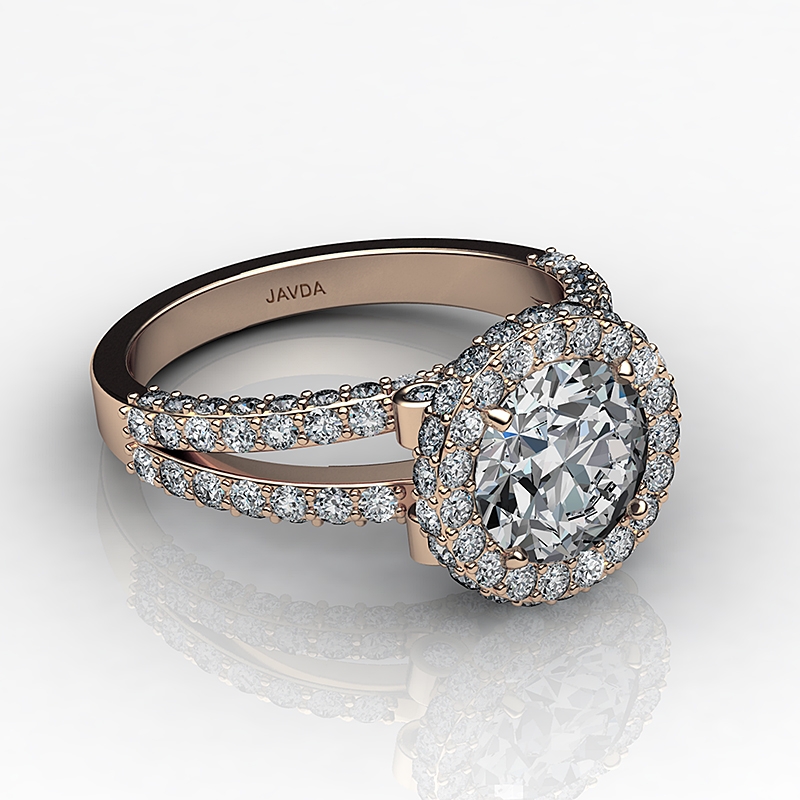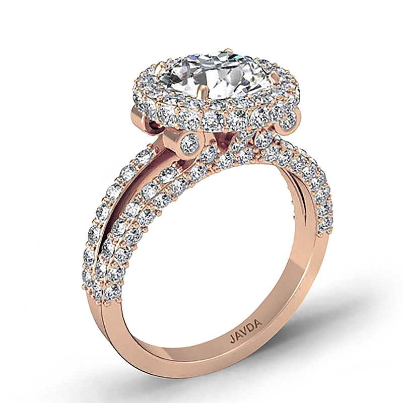Diamond Engagement Ring Round Semi Mount 14k Rose Gold Halo 1.4Ct - javda.com