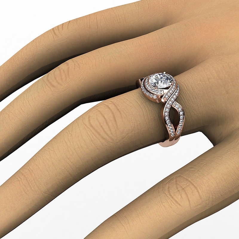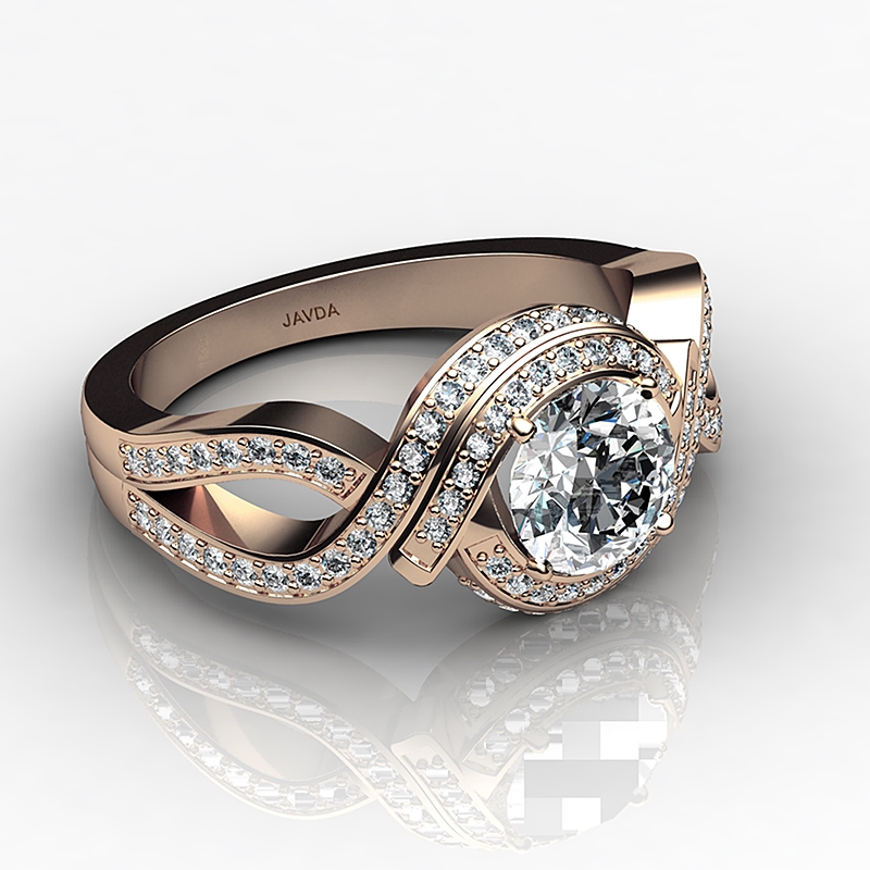 1Ct Diamond Antique Engagement Ring 18k Rose Gold Round Semi Mount Halo Setting - javda.com