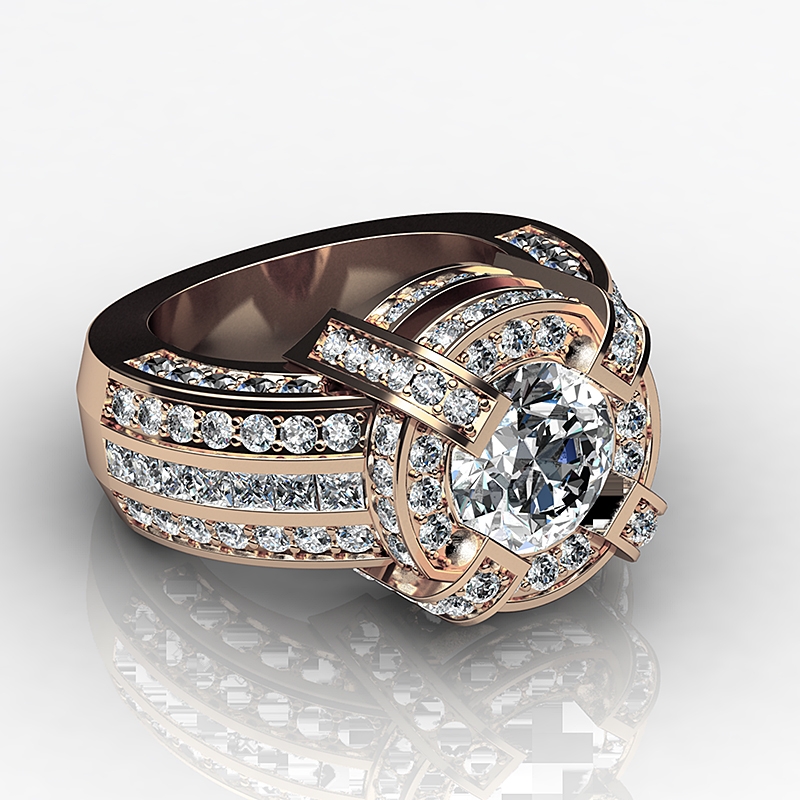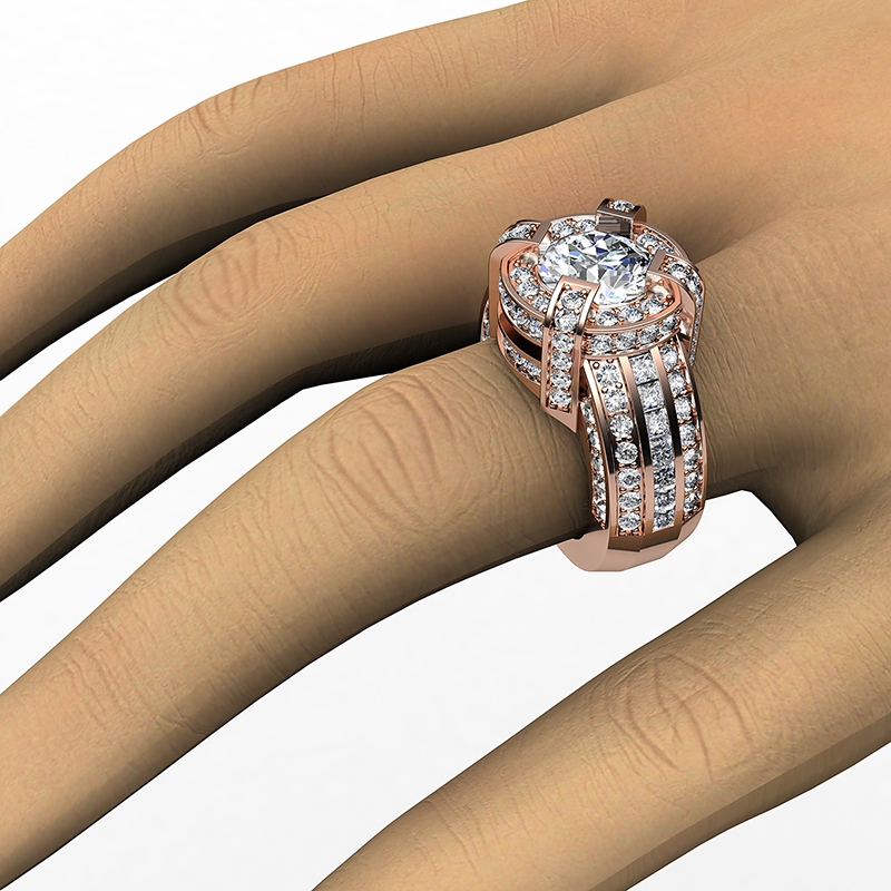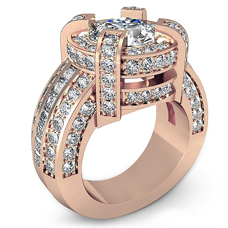 style Engagement Ring, center is Round shape Diamond Report by IGI, D Color & VS1 clarity, Made in 18k Rose Gold (3.94 ct. tw.)