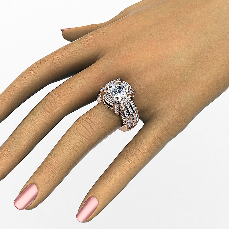 2.9Ct Round Semi Mount Diamond Engagement Halo Pave Setting Ring 18k Rose Gold.