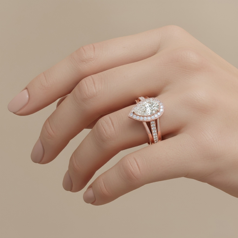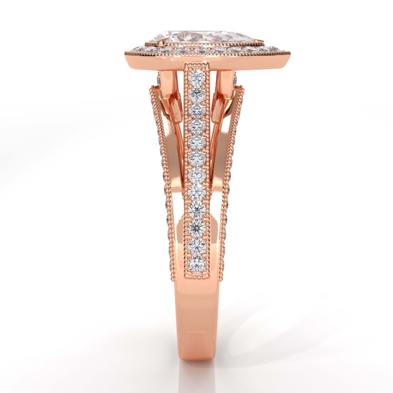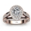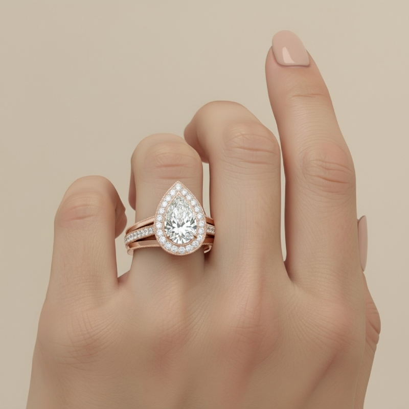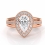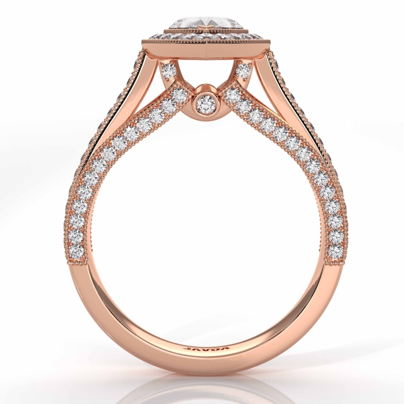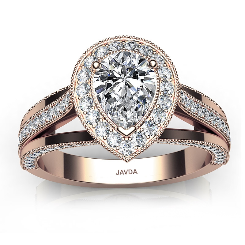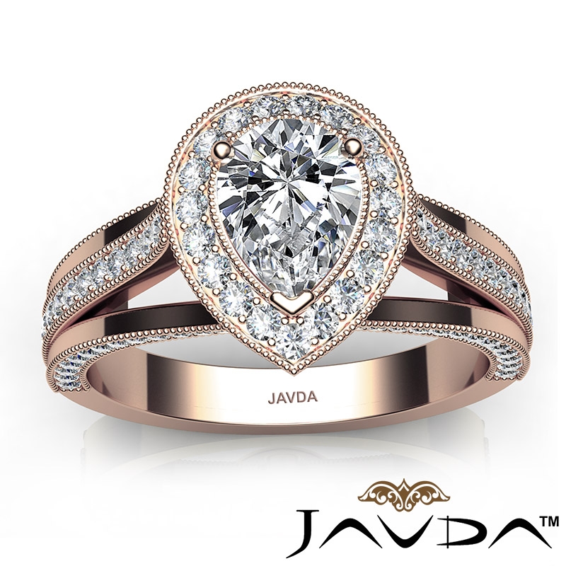 Halo Pave Diamond Engagement Pear Semi Mount Millgrain Ring 18k Rose Gold 0.9Ct - javda.com
