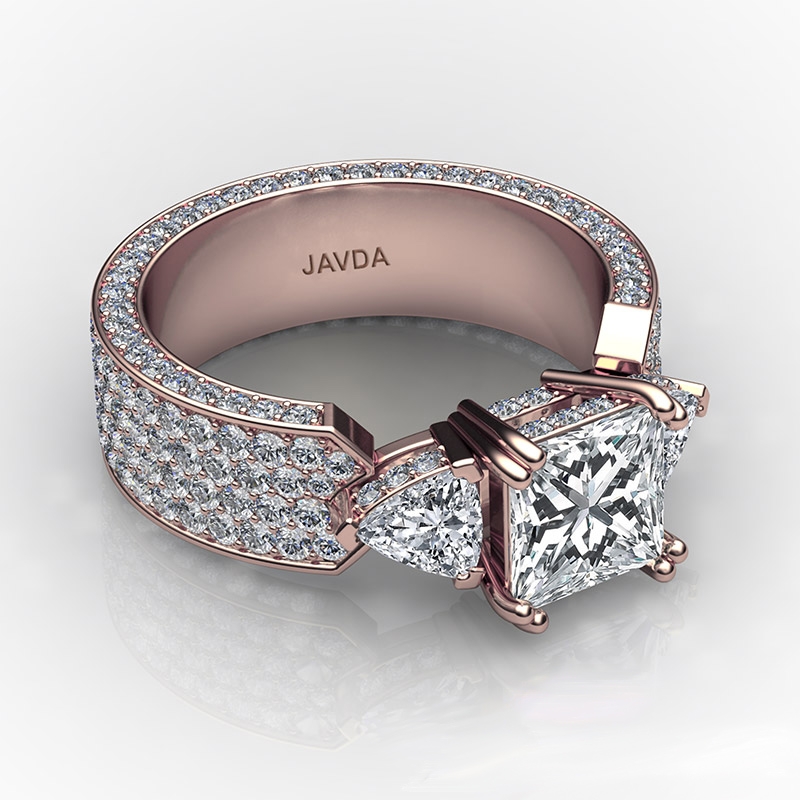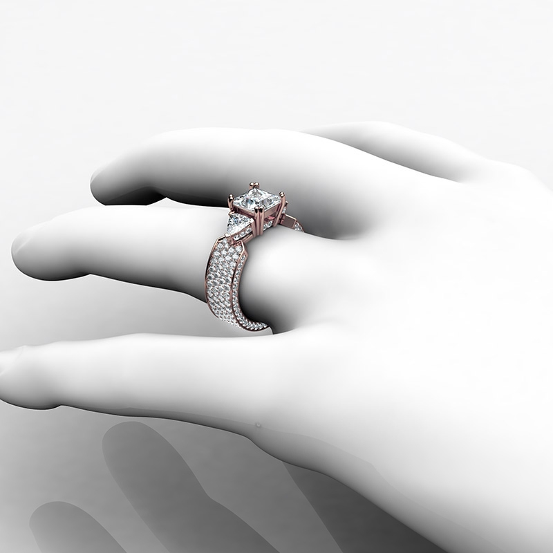 style Engagement Ring, center is Princess shape Diamond Report by IGI, E Color & VS1 clarity, Made in 14k Rose Gold (3.42 ct. tw.)