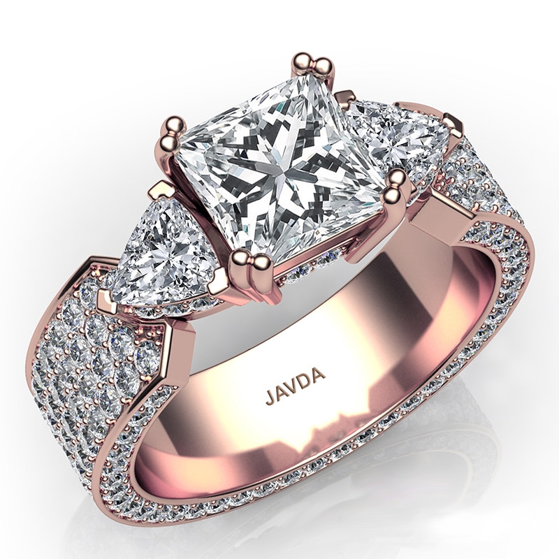 3 Stone Princess Cut Diamond Engagement Semi Mount Ring 14k Rose Gold 2.4Ct.