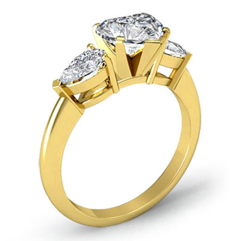 Pear Diamond 3 Stone Engagement Ring 18k Yellow Gold Round Semi Mount 0.5Ct.