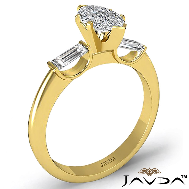 Baguette Round Diamond 3Stone Engagement Ring Setting 18k Yellow Gold 0.3Ct.