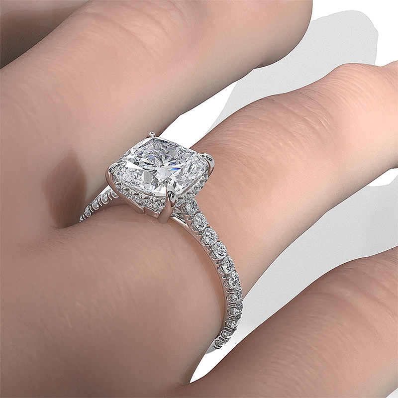 style Engagement Ring, center is Cushion shape Diamond Report by IGI, D Color & VS1 clarity, Made in 14k White Gold (1.94 ct. tw.)
