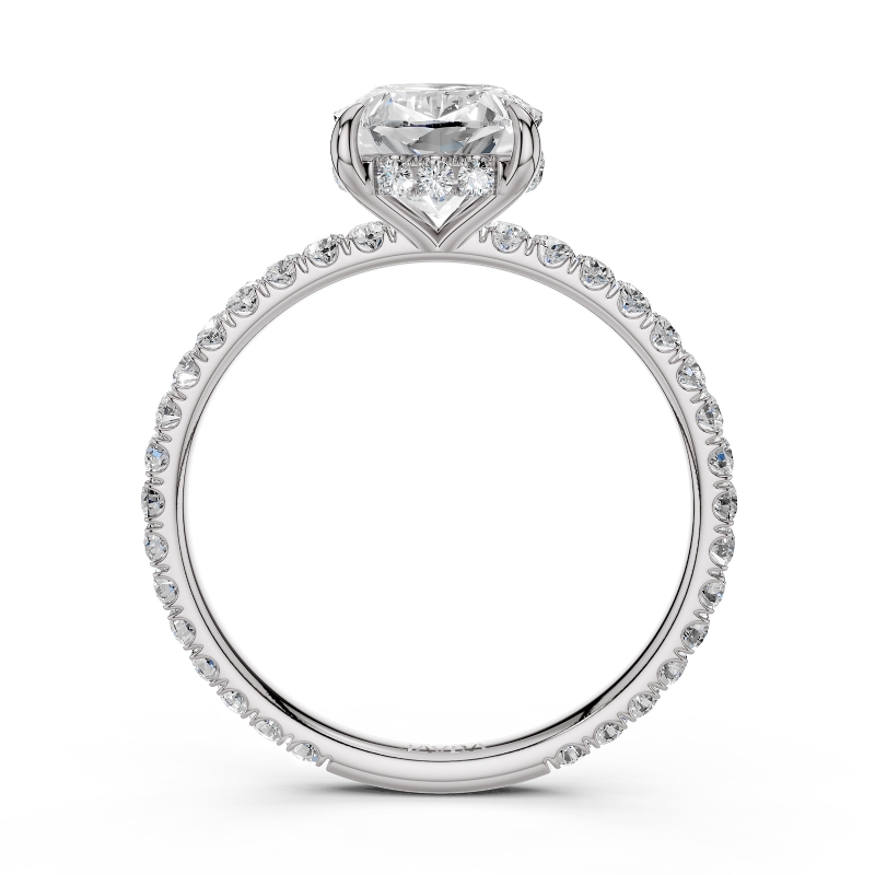 U Pave Hidden Halo Semi Mount Diamond Engagement Ring 14k White Gold 0.48Ct.