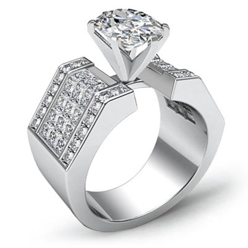 Invisible Setting Shank style Engagement Ring, center is Oval shape Diamond Report by GIA, E Color & VVS2 clarity, Made in 14k White Gold (3.42 ct. tw.)