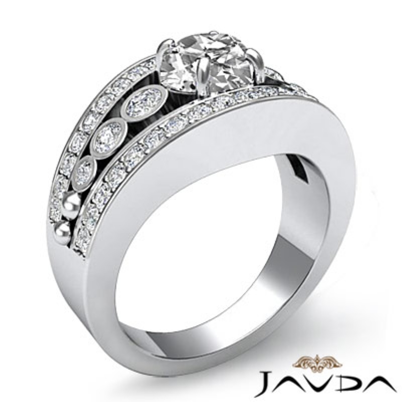 Bezel Setting Sidestone style Engagement Ring, center is Oval shape Diamond Report by GIA, D Color & VS2 clarity, Made in 14k White Gold (1.28 ct. tw.)