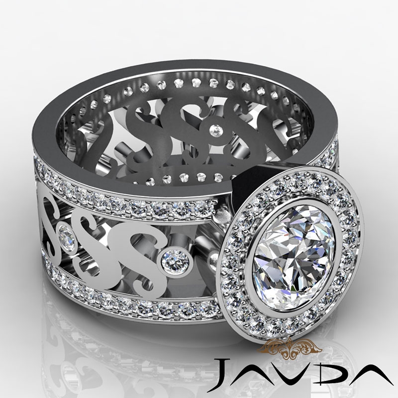 Diamond Engagement Ring Halo 14k White Gold Oval Semi Mount 1.3Ct.
