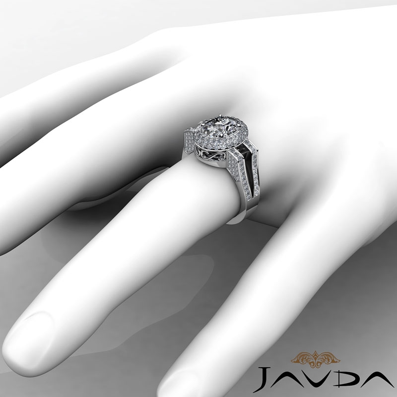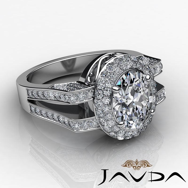 style Engagement Ring, center is Oval shape Diamond Report by GIA, E Color & VVS2 clarity, Made in 14k White Gold (1.9 ct. tw.)