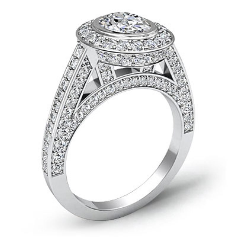 style Engagement Ring, center is Oval shape Diamond Report by GIA, E Color & VVS2 clarity, Made in 14k White Gold (2.45 ct. tw.)
