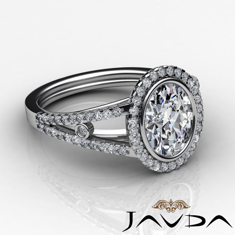 Bezel Halo Prong Setting style Engagement Ring, center is Oval shape Diamond Report by GIA, D Color & VVS1 clarity, Made in 14k White Gold (1.6 ct. tw.)
