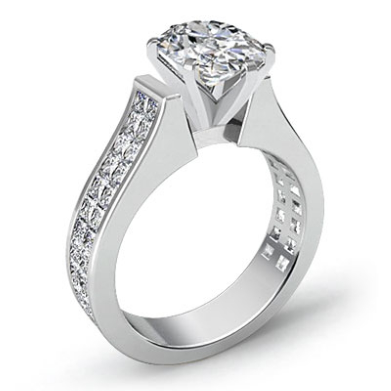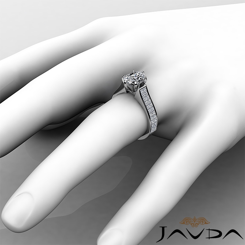 Invisible Shank Sidestone style Engagement Ring, center is Oval shape Diamond Report by GIA, J Color & SI2 clarity, Made in 14k White Gold (3.01 ct. tw.)