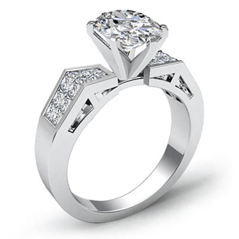 Invisible Classic Side Stone style Engagement Ring, center is Oval shape Diamond Report by GIA, D Color & VS2 clarity, Made in 14k White Gold (1.21 ct. tw.)