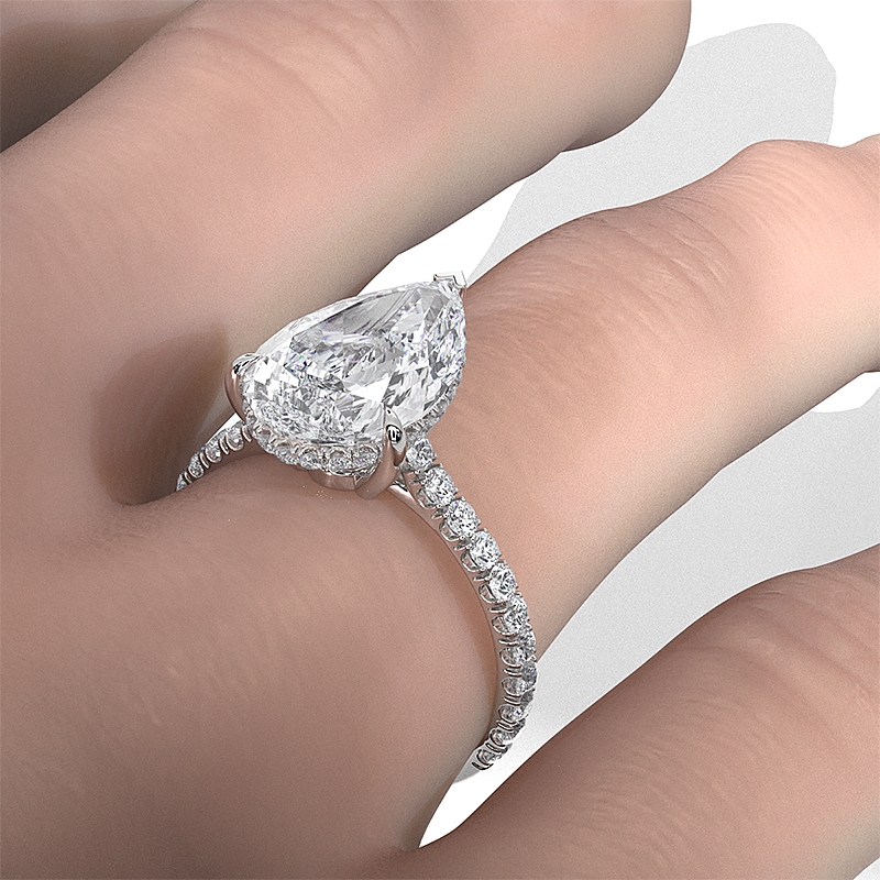 style Engagement Ring, center is Pear shape Diamond Report by IGI, E Color & VS1 clarity, Made in 14k White Gold (1.74 ct. tw.)