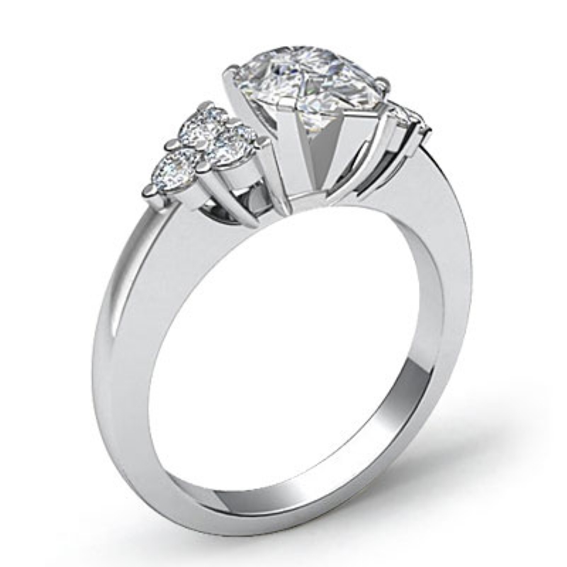 Round Diamond 3Stone Marquise Engagement Ring Setting 14k White Gold 0.3Ct.