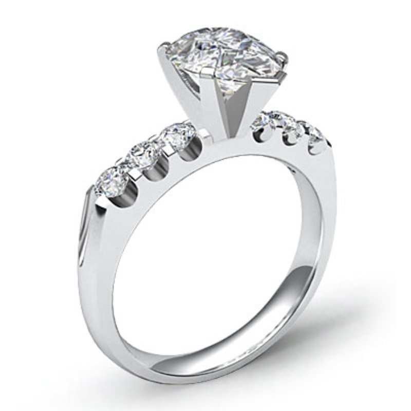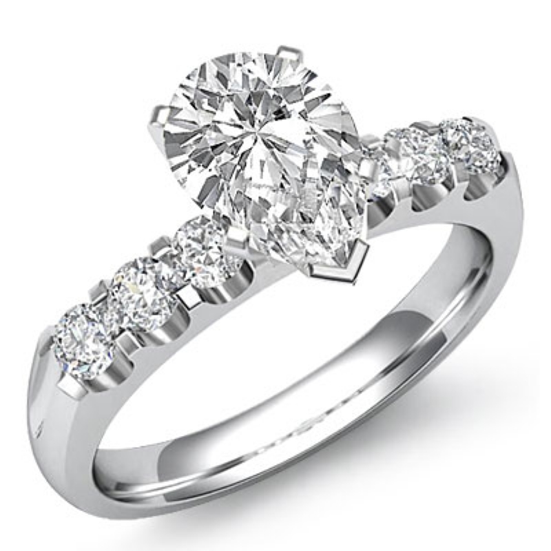 Classic 6 Stone Prong Shank style Engagement Ring, center is Pear shape Diamond Report by GIA, J Color & SI1 clarity, Made in 14k White Gold (1.11 ct. tw.)